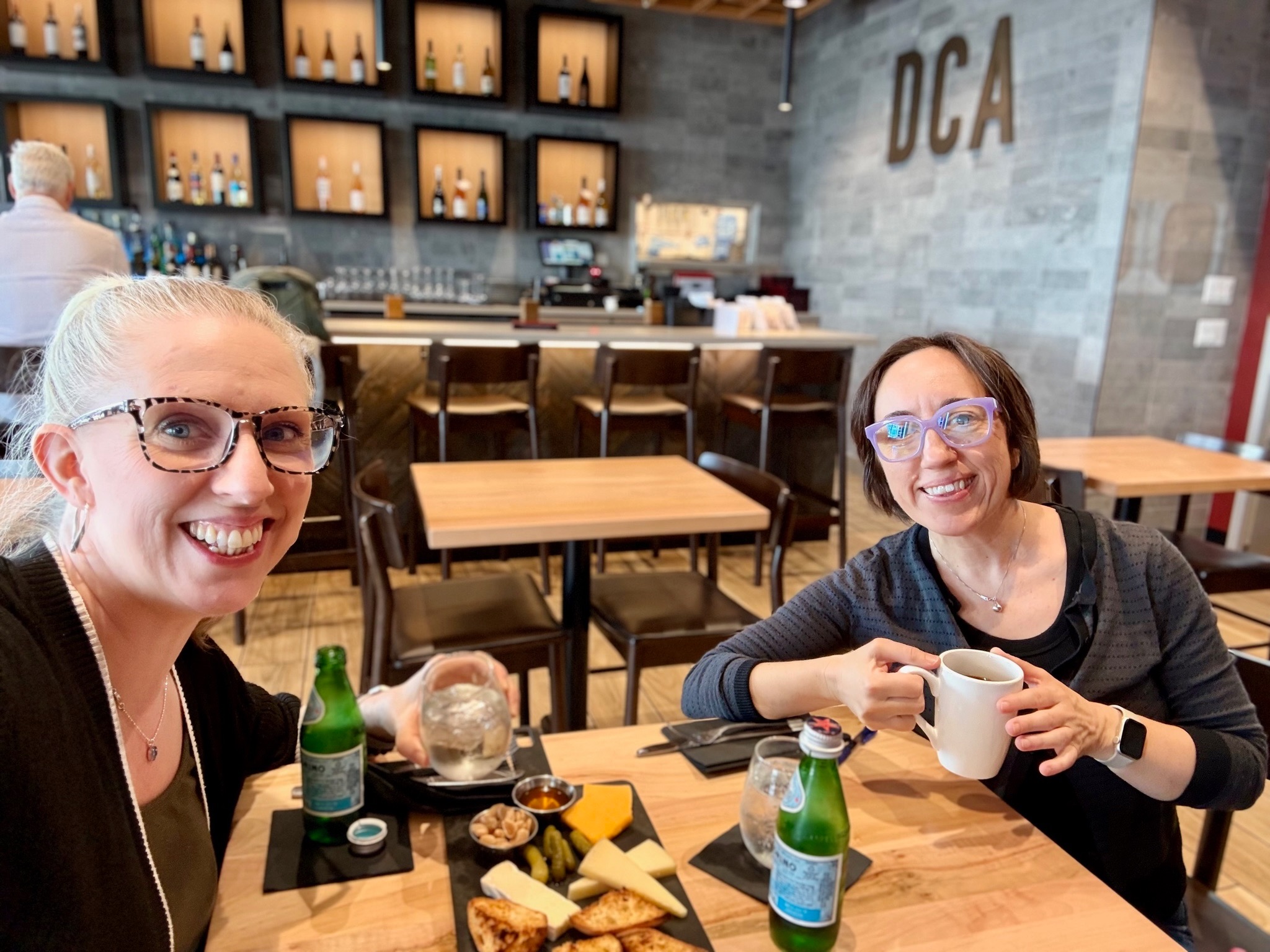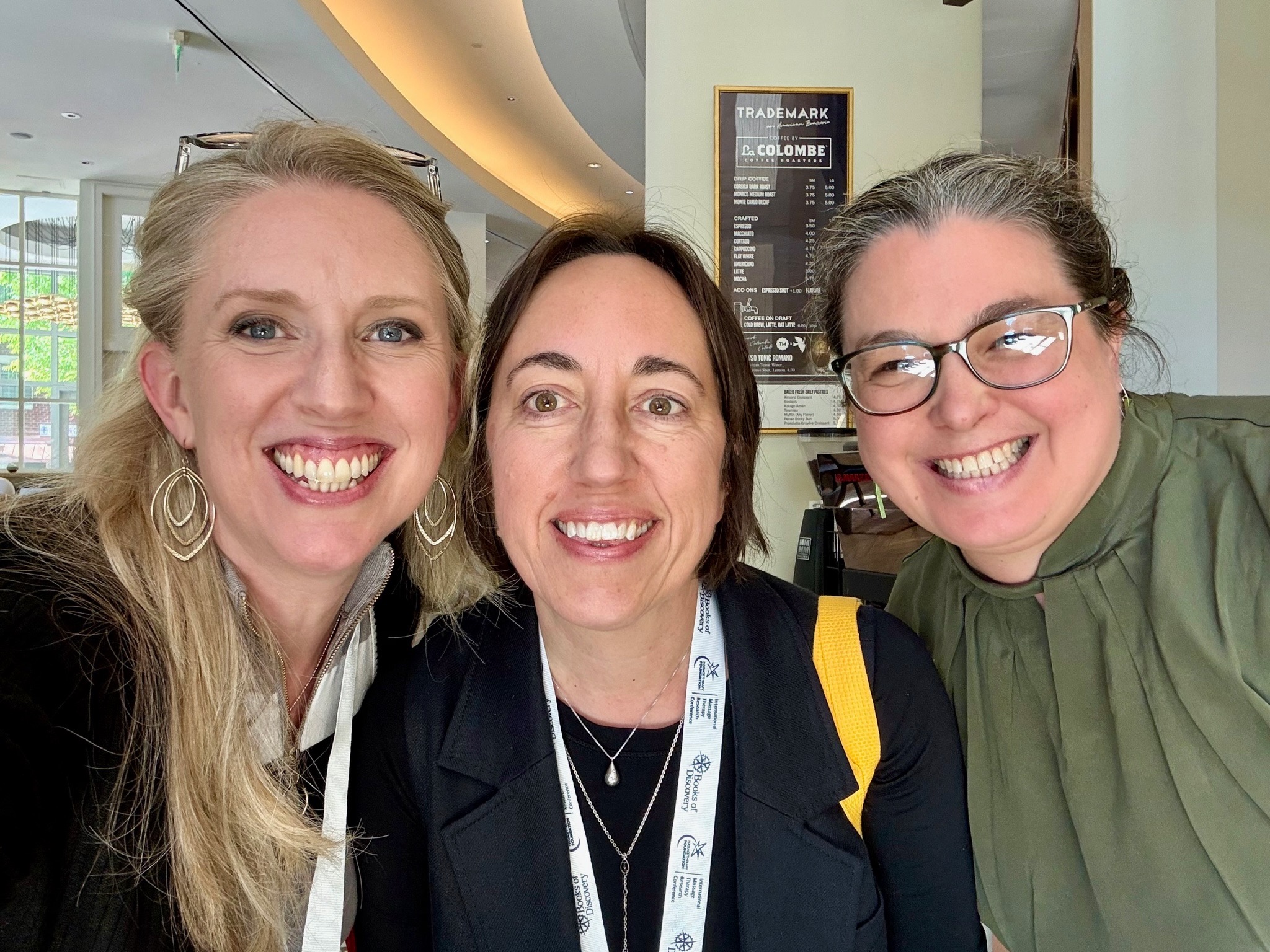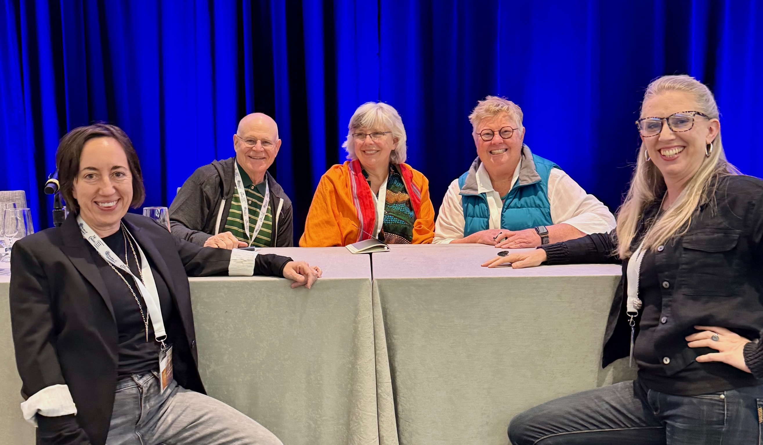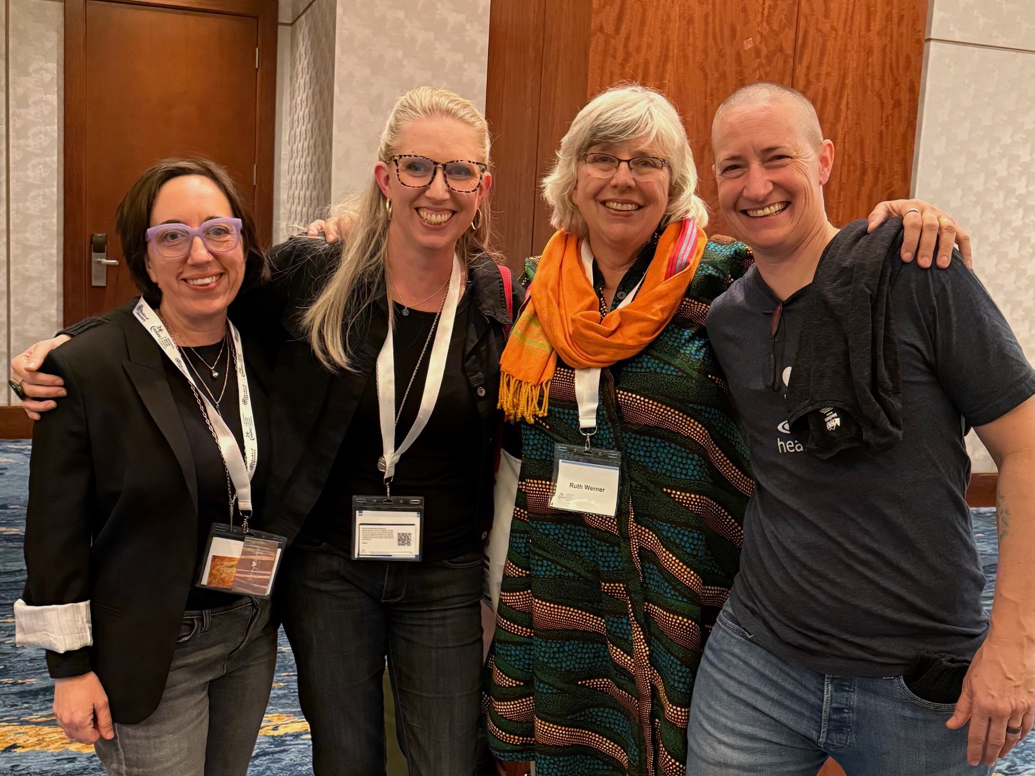Meeting up with fellow ABMP Massage & Bodywork authors and podcasters, from left to right, Nicole from AnatomySCAPES, Rachelle from AnatomySCAPES, Ruth Werner, and Cal Cates.