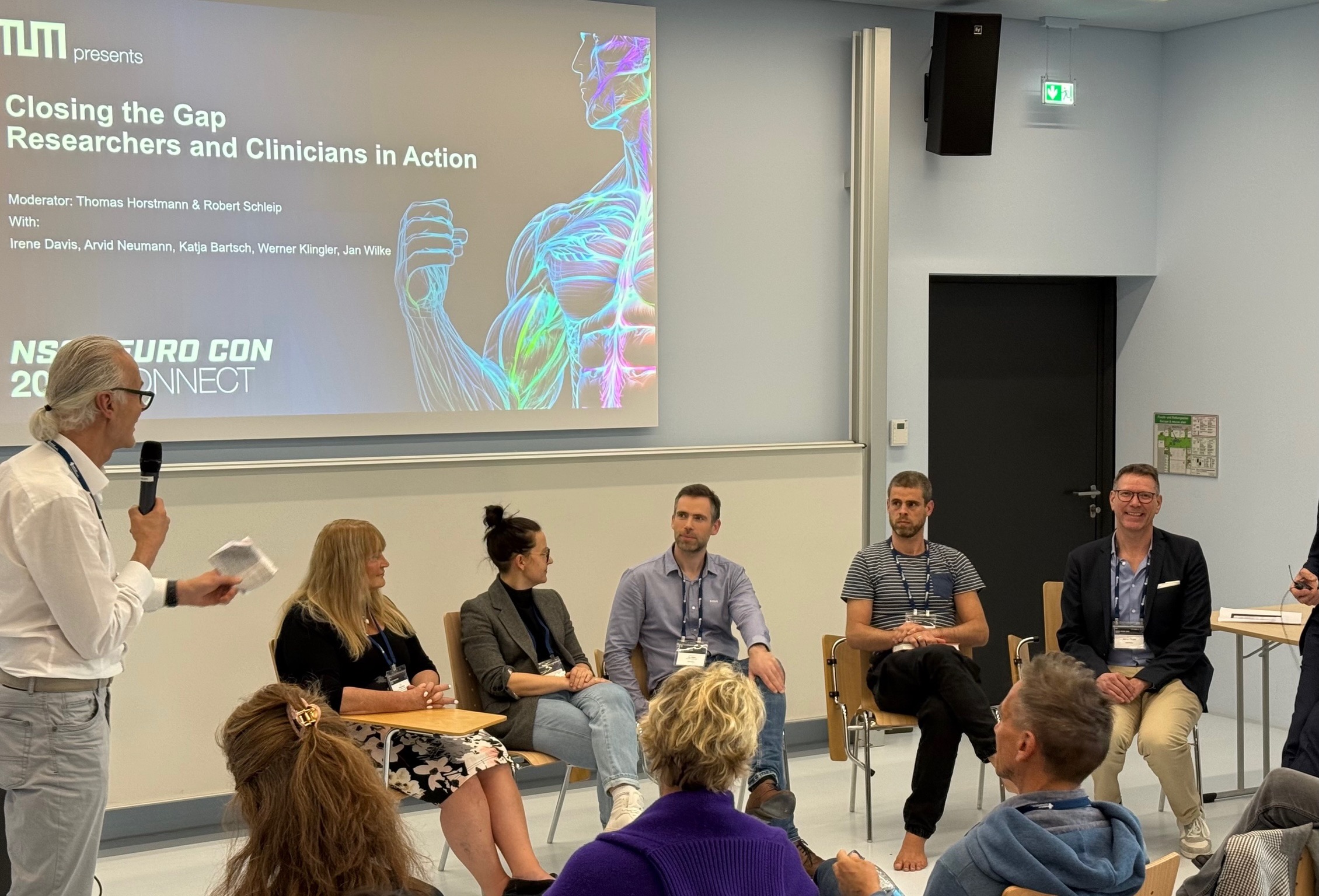 Panel discussion Left to right: Robert Schleip, Irene Davis, Katja Bartsch, Jan Wilke, Arvid Neumann, and Werner Klingler.