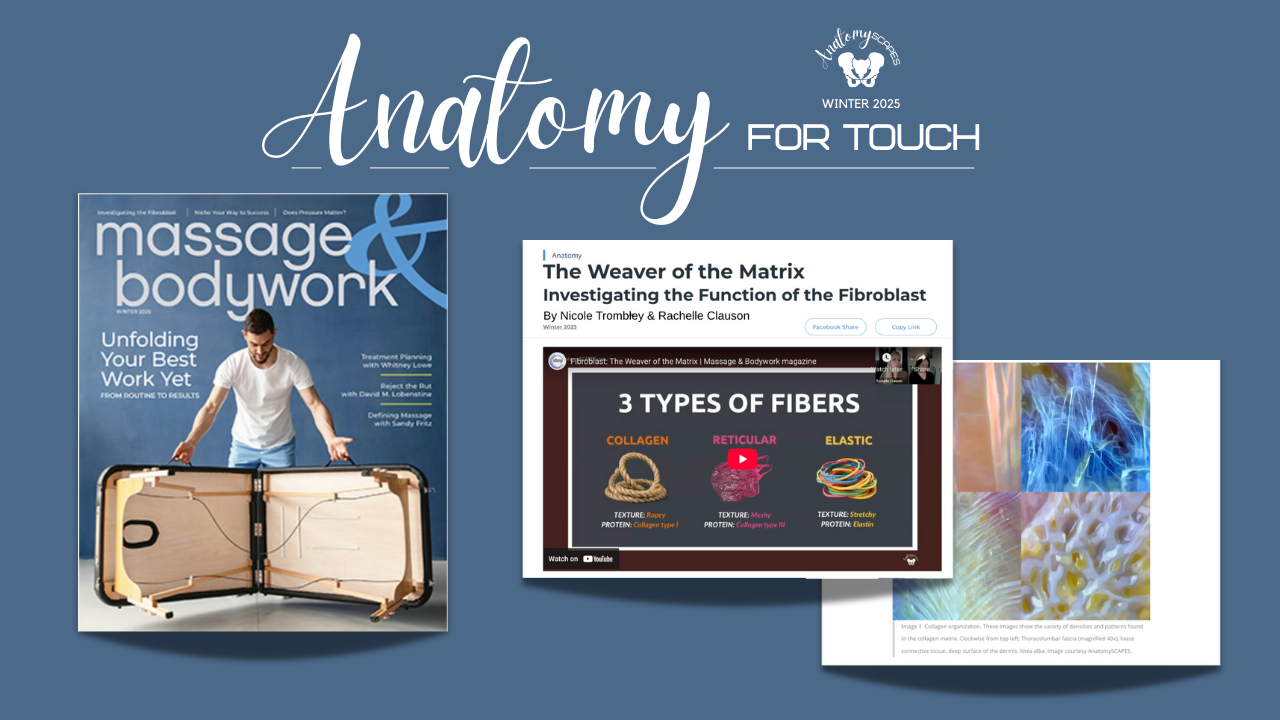 In addition to neurological responses, fluid dynamics, and other mechanisms of the human form, understanding how fibroblasts change tissue at the cellular level provides insight into how our hands create change in clients’ tissues. We’re not just massaging muscles or “breaking up adhesions.” We’re providing mechanical information to a living, adaptable, three-dimensional matrix that responds to our input. The next time you work with a client, remember, you’re not just touching tissue, you’re having a direct conversation with the fibroblasts.