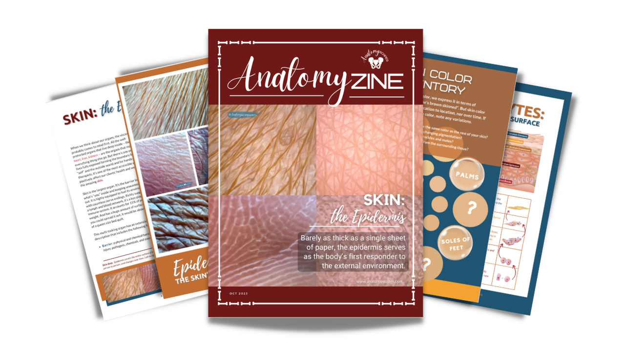 COURSE MANUAL: Our image-packed AnatomyđZINE will guide as you explore the fascinating world of the epidermis â from its constantly renewing cell layers to its protective melanin, from its ridged textures to its keratin-tough armor.