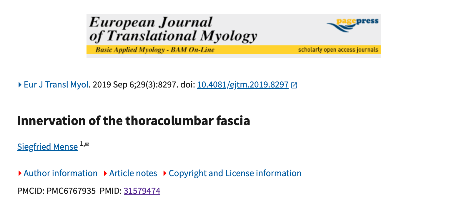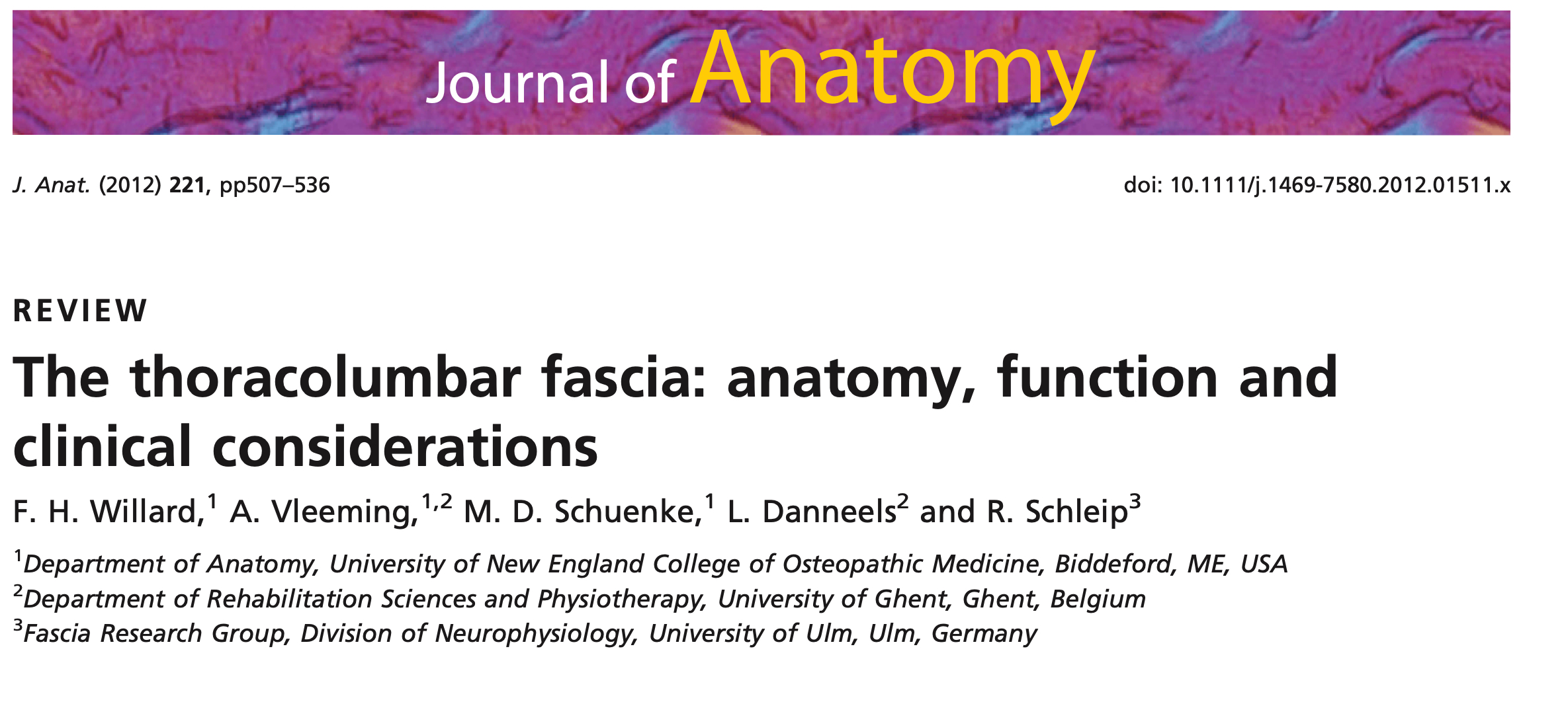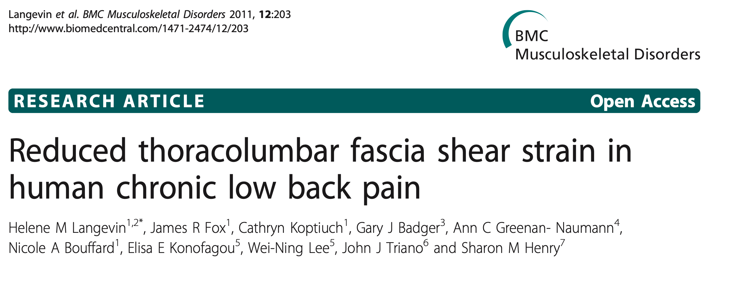 The thoracolumbar fascia is easily the most studied fascial "structure" in the human body, ranging from its biomechanical role to its likely role in nonspecific low back pain. Here, Willard, et al.'s classic review from 2012 maps out the three-dimensional anatomy of the TLF. The papers by Langevin 2011), Mense (2019), and Wilke (2017) all map out the innervation and tissue alterations that establish evidence for TLF's role in LBP. An entire generation of grad students is writing their dissertations modeled after Langevin's work!